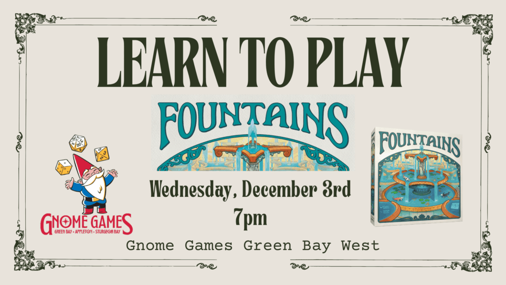 We at Gnome Games Appleton East are kickstarting our board game nights. One board game will be the showcase, while other similar games will be available to try out! These games are available every day via our demo library, but board game nights will be for learning in a more focused environment. Keep an eye on our calendar and socials for more information!
