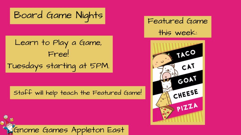 Join Gnome Games for a special launch event for Cat Fluxx from Looney Labs! We’re celebrating the launch of this purr-fectly chaotic card game on Tuesday, September 9th, 2025, at The Pawffee Shop Cat Cafe in Appleton.