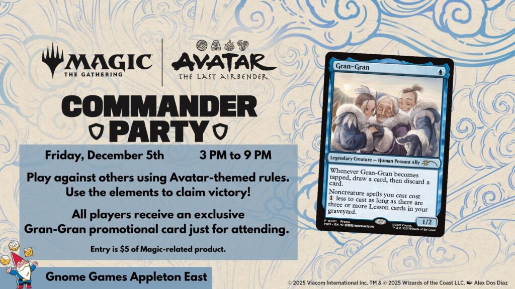 Magic The Gathering Avatar: The Last Airbender Commander Party at Gnome Games Appleton East – $5*