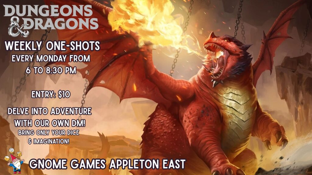 Get those miniatures painted! If you don’t have a game to use these beautifully painted miniatures at, we host weekly one-shots for both Dungeons & Dragons and Daggerheart! These role playing games and more can be located under the Role Playing tab of our Gnome Games calendar!