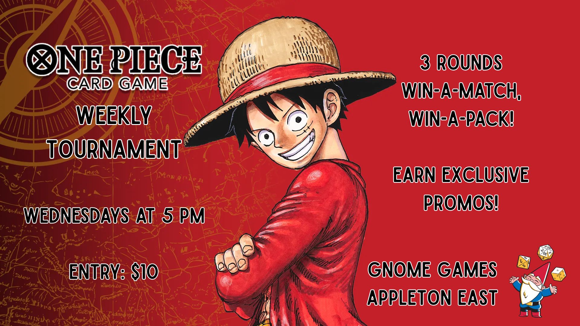 Join us at Gnome Games Appleton East for our One Piece Card Game Weekly Tournament!