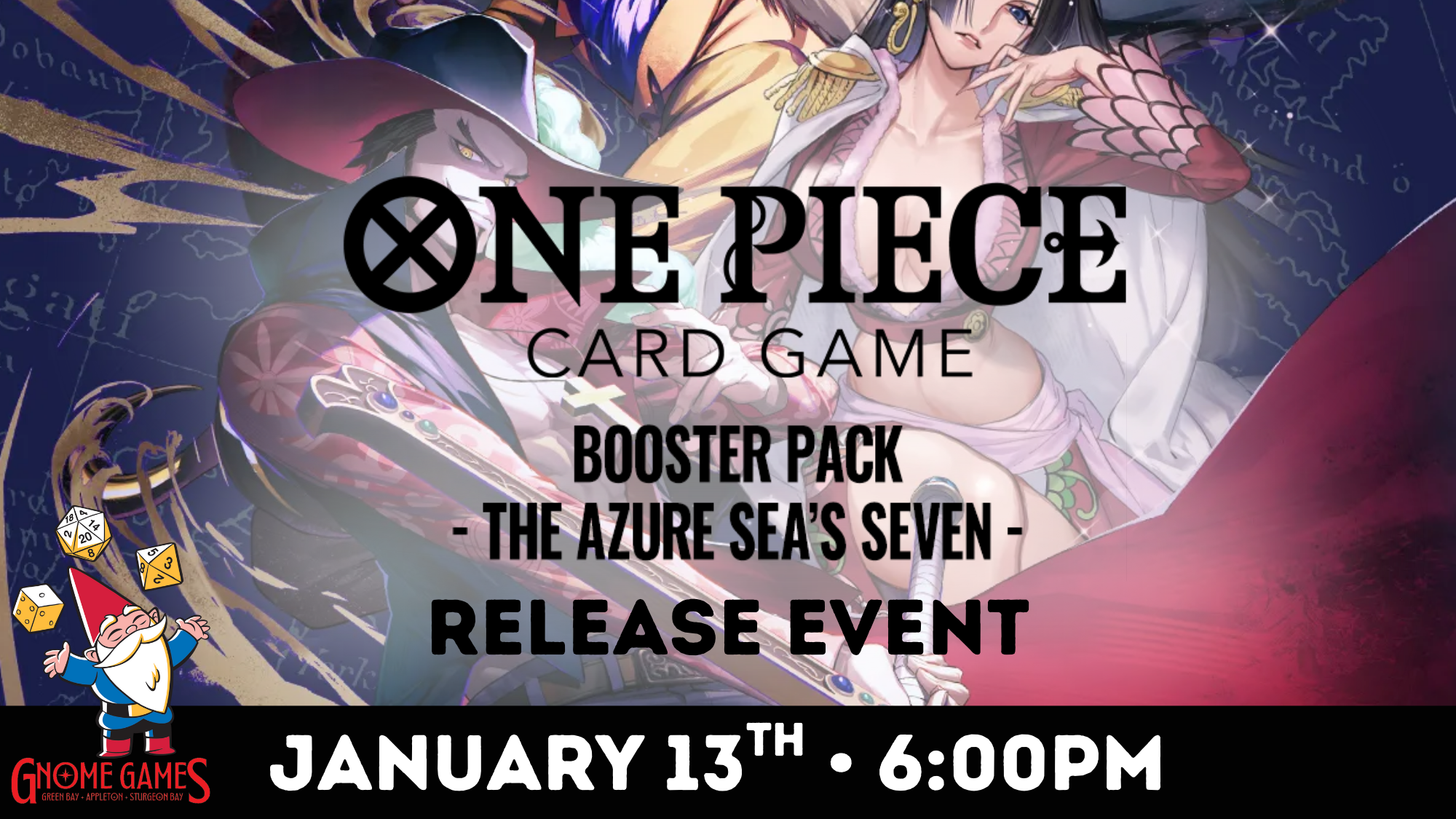 Join us at Gnome Games Green Bay East for our One Piece Prerelease Event for –The Azure Sea’s Seven-[OP-14]!