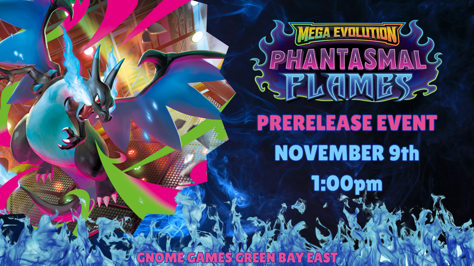 Come play in our Pokémon Phantasmal Flames Prerelease at Gnome Games Green Bay East!