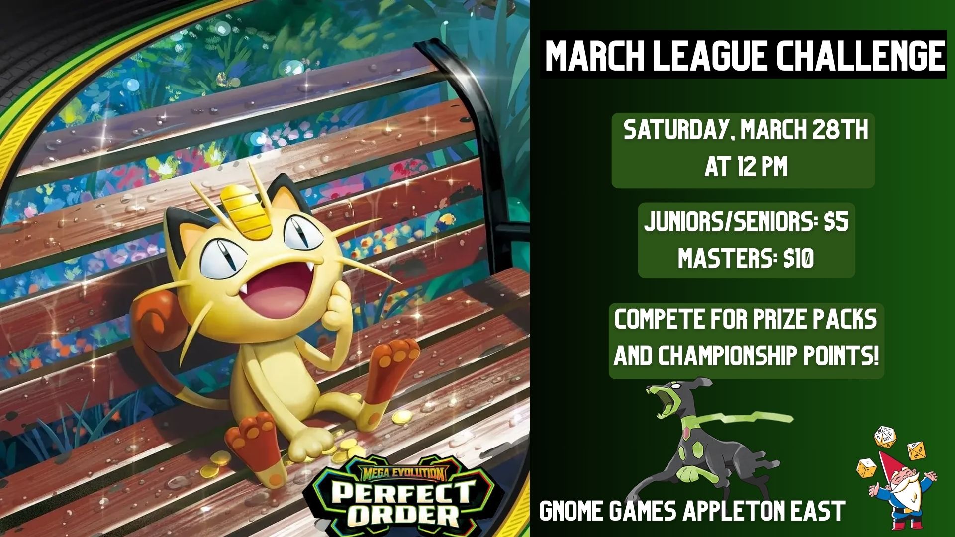 Join us at Gnome Games Appleton East for our March Pokémon League Challenge!