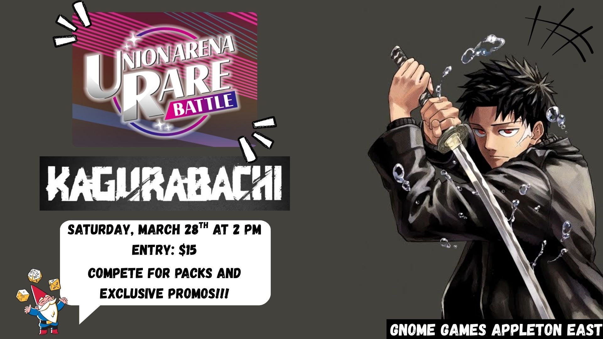 Join us at Gnome Games Appleton East for our Union Arena Kagurabachi Rare Battle!