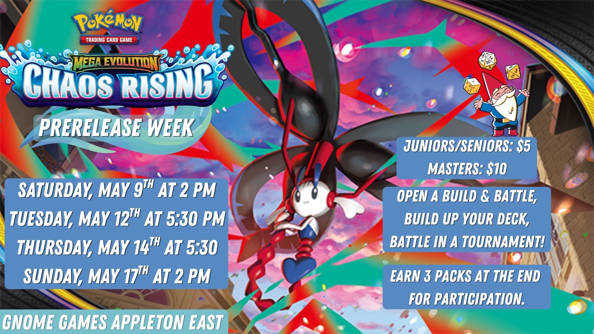 Join us at Gnome Games Appleton East for our Pokémon Chaos Rising Prerelease!