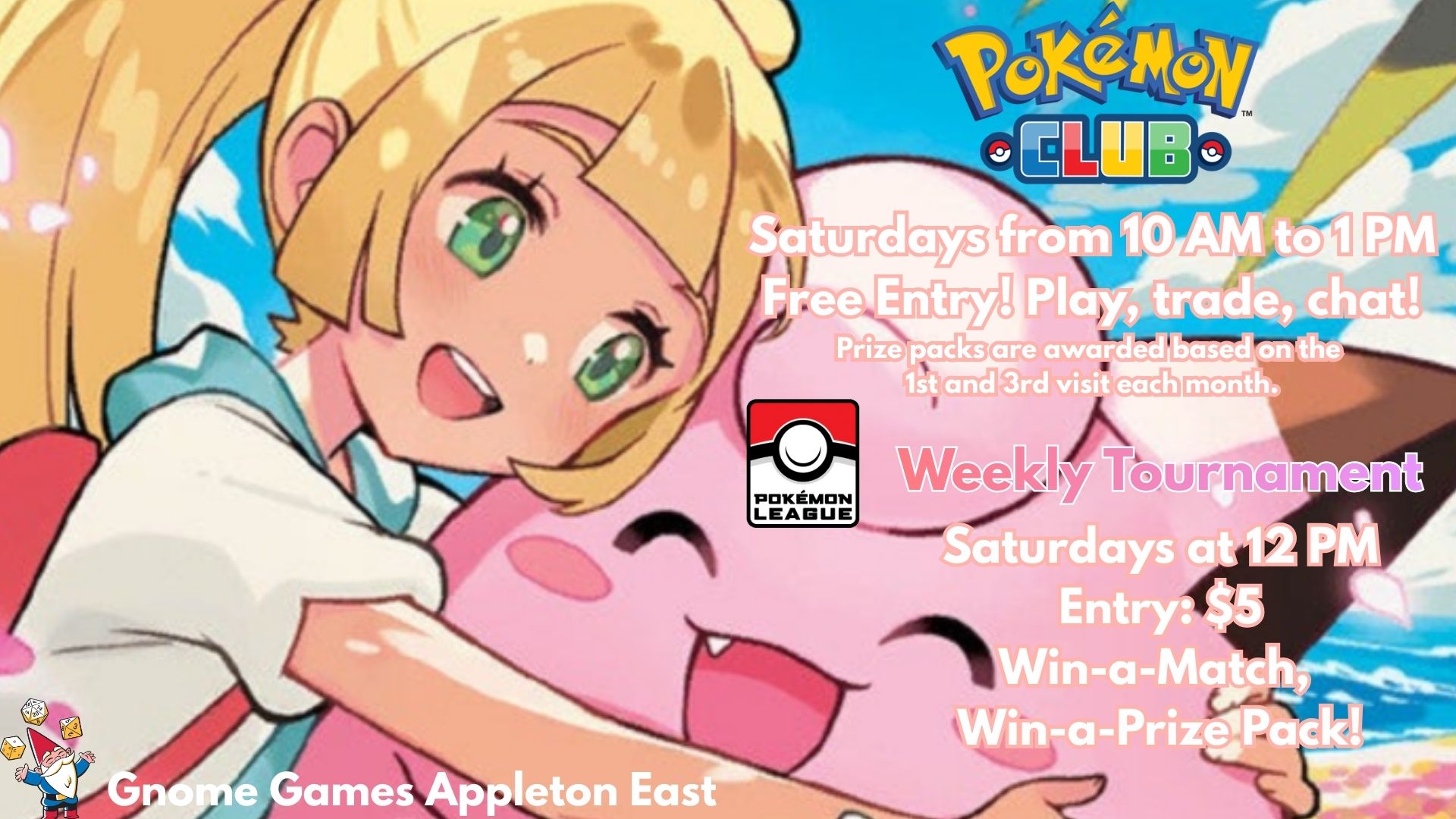 Join us at Gnome Games Appleton East for our weekly Saturday Pokémon Club!