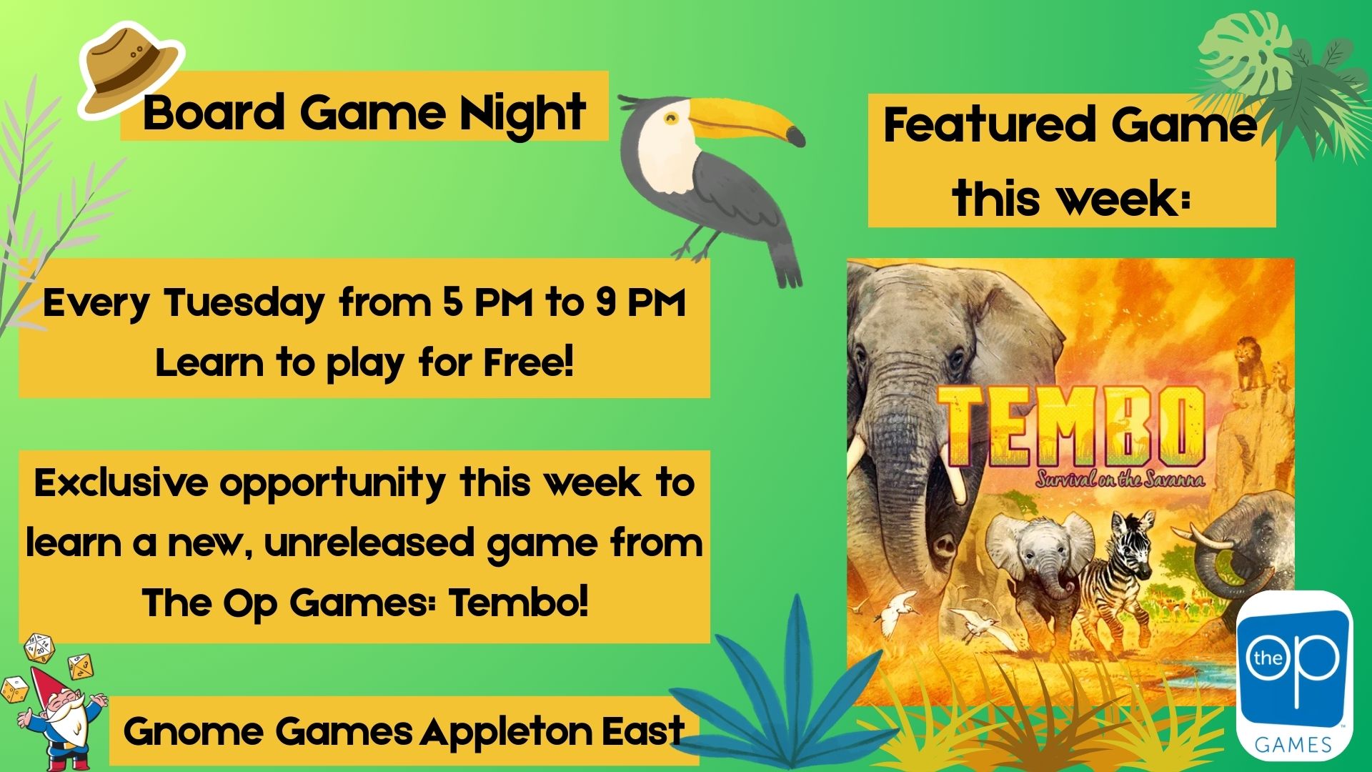 For a limited time, we’re providing a demo for The Op Games’ upcoming release, Tembo! On Tuesday, February 17th, join us for a guided play session! Play by yourself or with up to 3 friends in this cooperative game where you’re leading a herd of elephants through the savannah on a journey of survival. How do you win? Reach the end! Avoid lions, search out food and water, and navigate shifting terrain as you make your trek across the savannah.