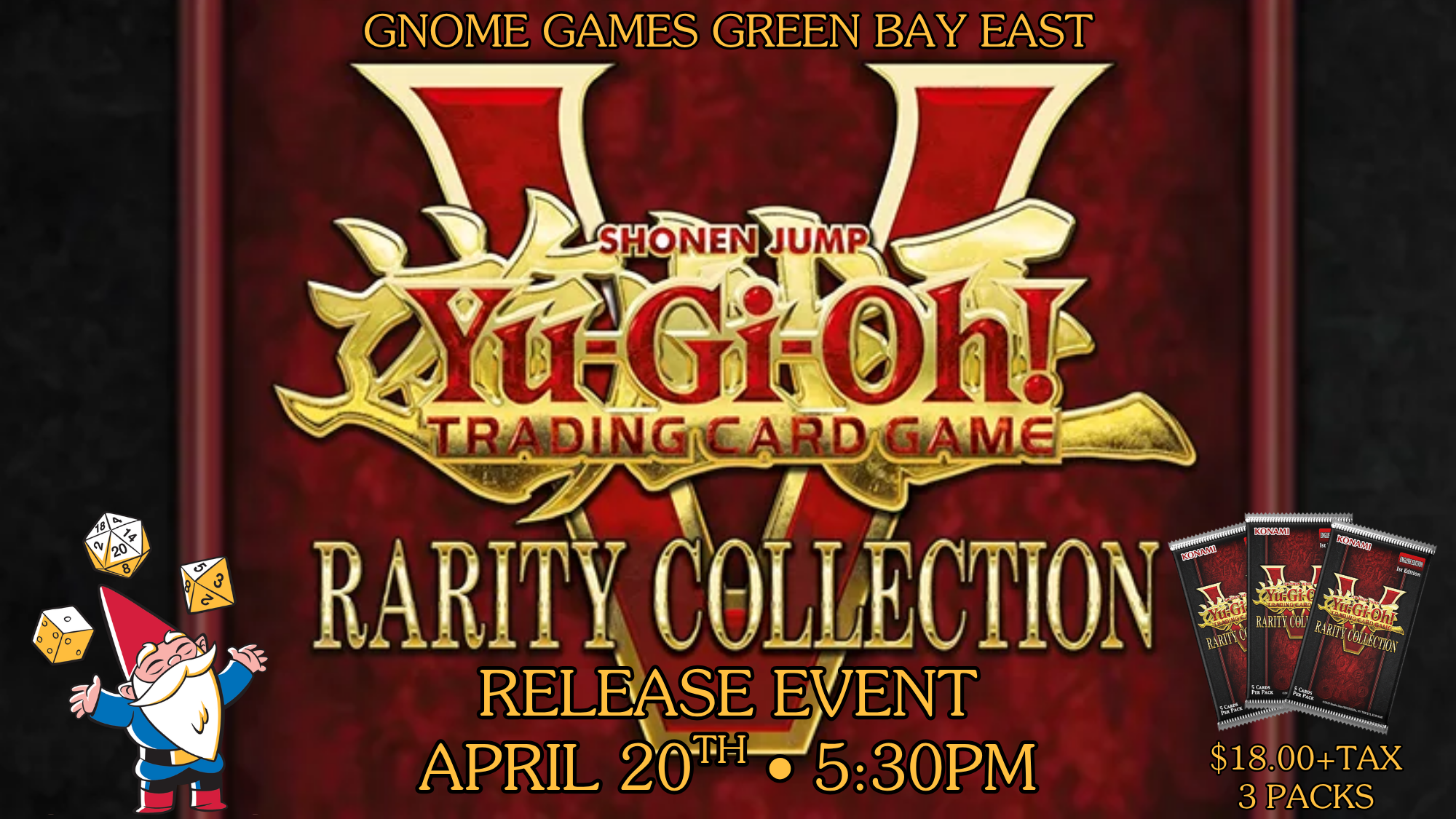 Gnome Games Green Bay East invites you tov join in the celebration of Yu-Gi-Oh! Rarity Collection V with a special Release Event!