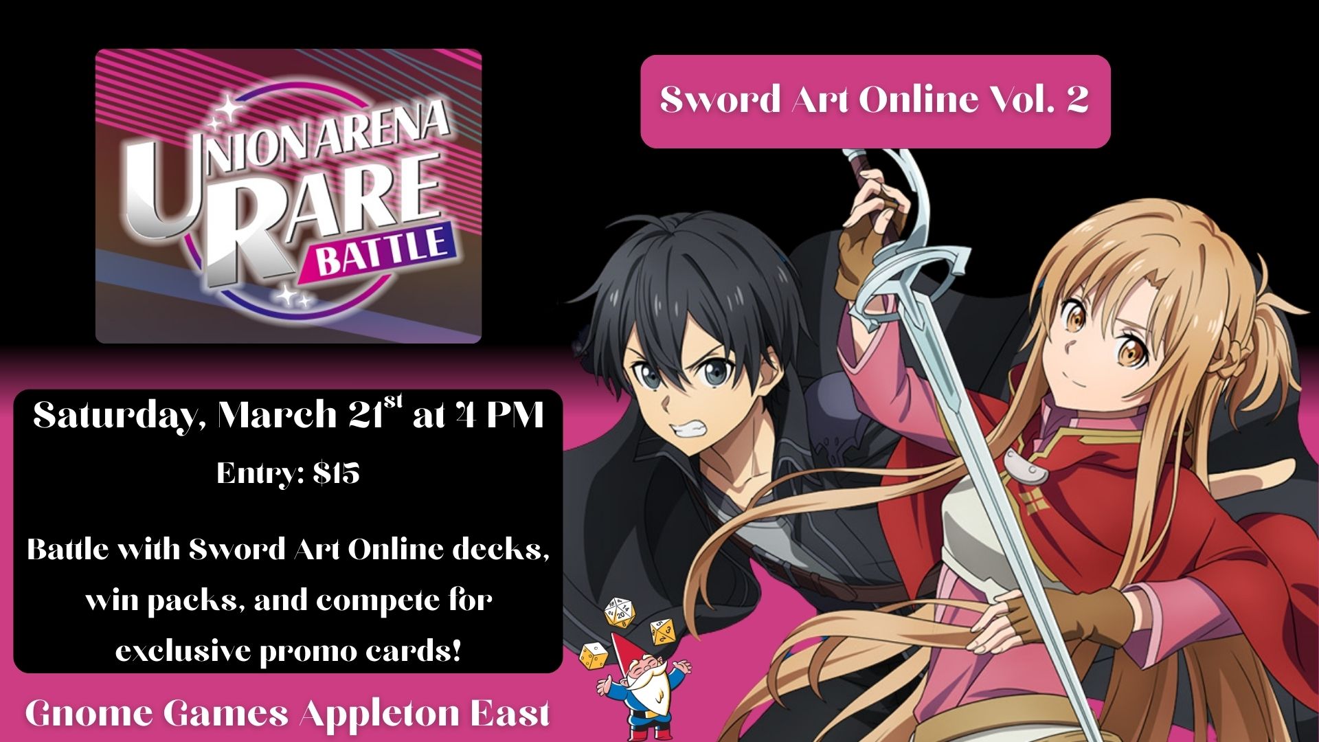 On Saturday, March 14th at 2 PM, come compete in a Union Arena Rare Battle! The theme – Evangelion: New Theatrical Edition! Through 3 rounds of a Swiss style tournament, see who’s got what it takes to take home the exclusive Winner foil stamped Evangelion Test Type-01 Pseudo DMS Phase Promo card! Each participant receives an Event Pack Volume 7. 4th through 2nd place receive a special Evangelion Test Type-01 Pseudo DMS Phase Promo card. Each round won awards players with a pack!