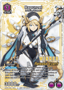 On Saturday, November 22nd at 2 PM, we are hosting a release event for Union Arena! Crack open 5 packs and battle it out in 3 rounds of a Swiss style tournament to win more packs! Every participant receives a release event pack and a special promotional card with Rapunzel [Pilgrim/Pioneer] on it! One triumphant winner will get the Winner promo card of Rapunzel [Pilgrim/Pioneer]!
