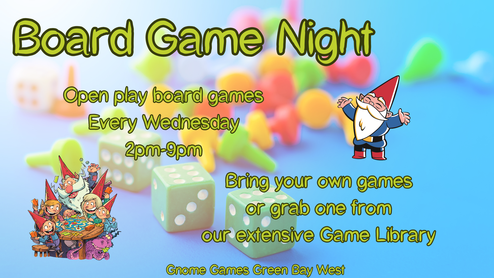 Open Play Board Games available to play! Bring your families and friends, grab a table and a game and have some fun!