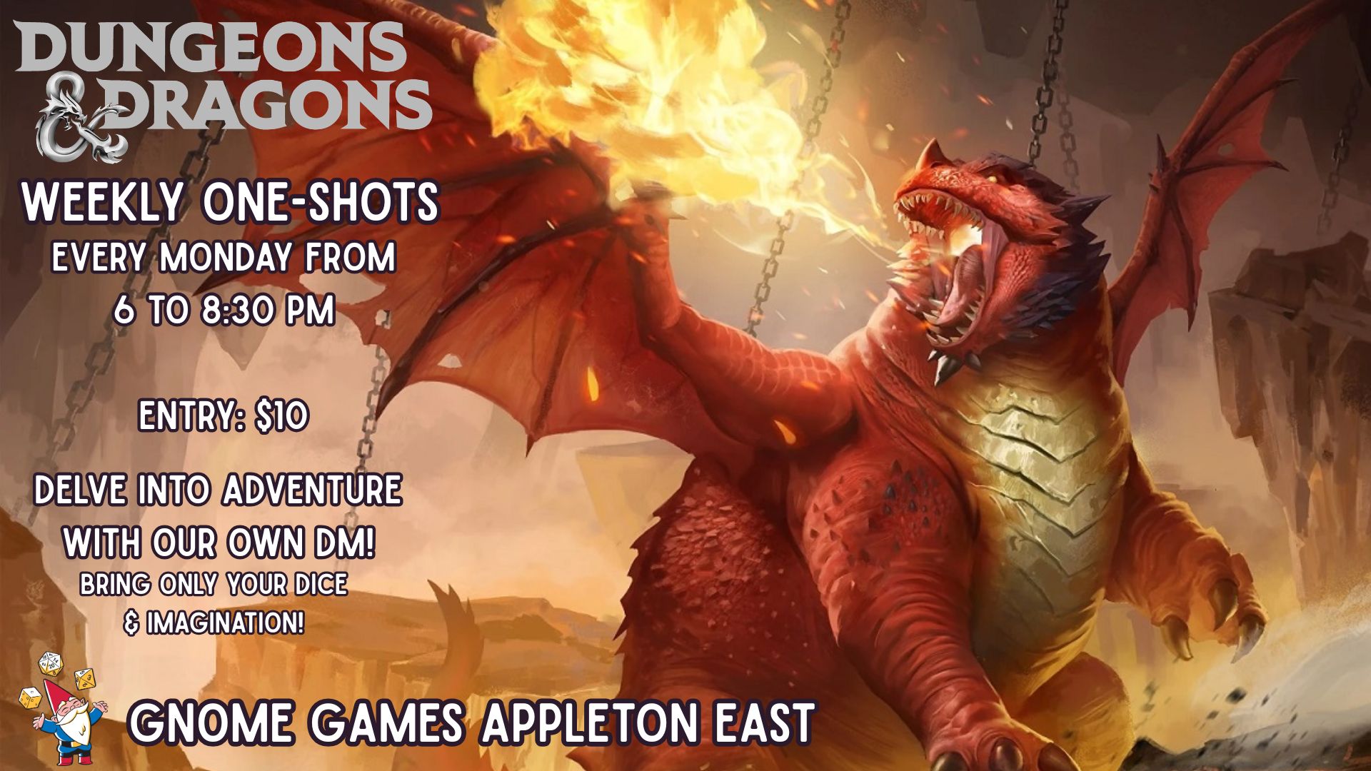Join us at Gnome Games Appleton East for our Dungeons & Dragons Weekly One-shots!