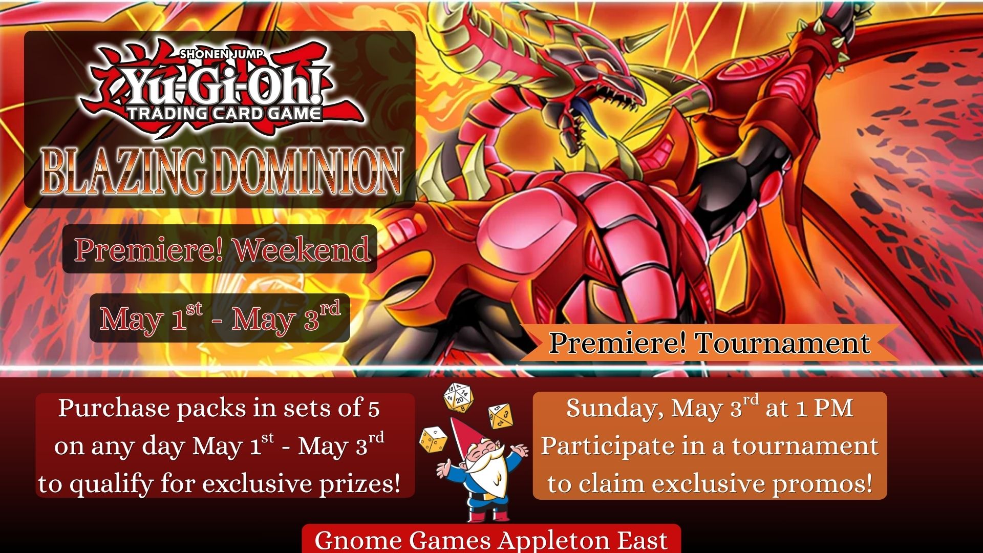 Join us at Gnome Games Appleton East for our Yu-Gi-Oh! Blazing Dominion [BLZD] Premiere! Weekend!