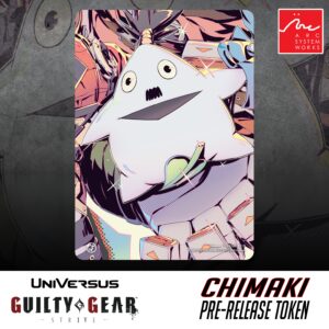 Saturday, November 29th, celebrate the release of the new UniVersus set for Guilty Gear: Strive! Open up a prerelease kit, craft your own deck, and battle it out for prizes! Each match won awards you with another pack. Everyone that participates receives an exclusive Chimaki Roman Cancel Token, only available at these exclusive Prerelease events!