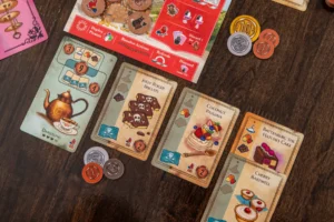 Compete against other pirates in your crew to present the best afternoon tea dishes to your Captain! By winning favor, you earn your Captain’s treasures, pushing you towards victory. Use worker mechanisms along the ship to select actions and affect turn order, number of cards, and more! But beware, pirates aren’t known for following rules. Smash dishes together to create ridiculous dish combinations, blow up opponent’s cards with cannons, and send a monkey or parrot to mess with different cards!