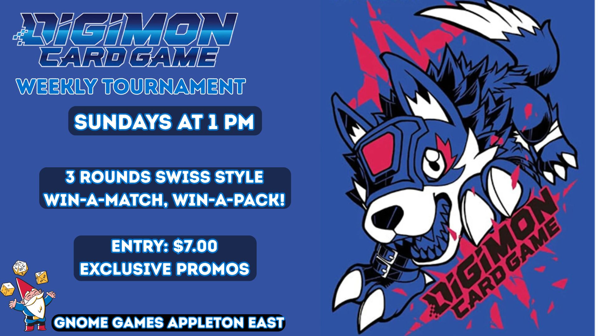 Join us at Gnome Games Appleton East for our weekly Digimon tournament!