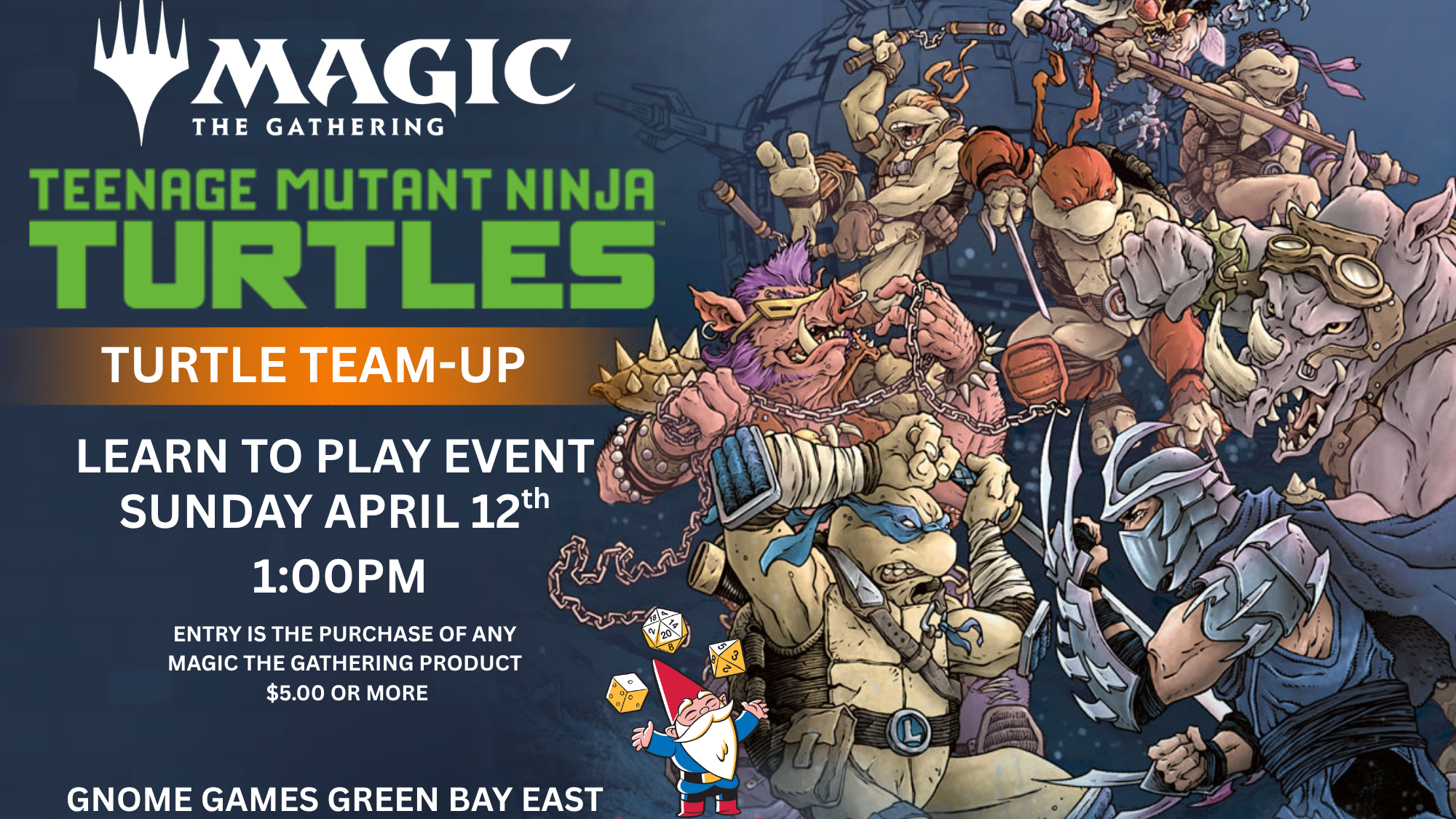 Try out a unique and exciting new way to play Magic the Gathering with a learn to play Teenage Mutant Ninja Turtles Turtle Team-Up event at Gnome Games Green Bay East!