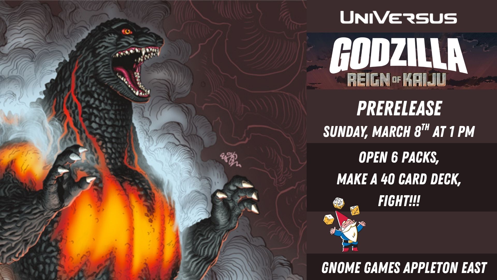Join us at Gnome Games Appleton East for our Riftbound Spiritforged Summoner Skirmish! On Saturday, March 7th at 11 AM join us for a Spiritforged Summoner Skirmish! These exclusive, competitive level events offer packs, exclusive prizing, and a Round 1 bye at the Regional Qualifiers to the winner! Rounds depend on attendance, and at most […]