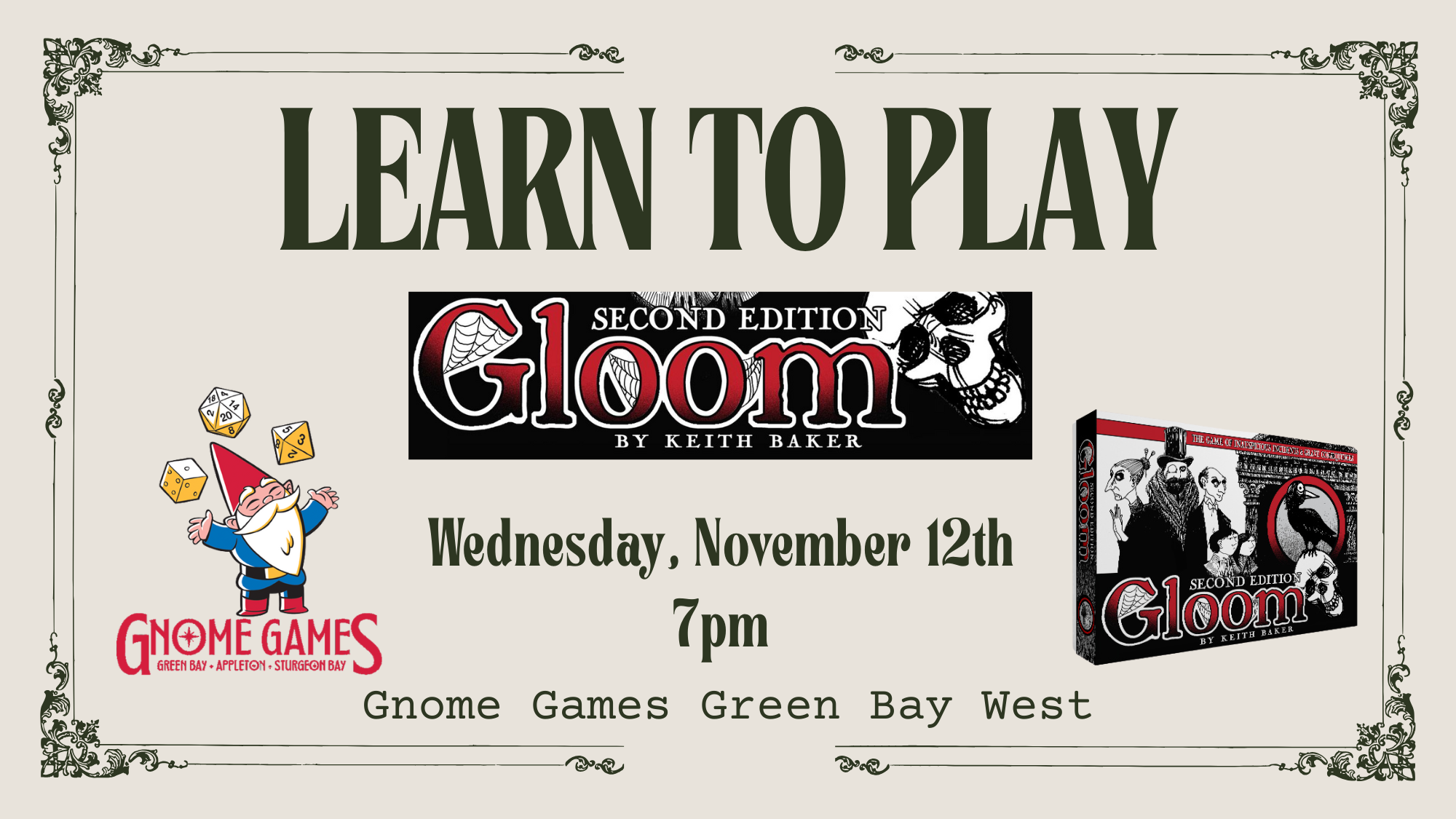 Watch for this and other events on our calendar: www.gnomegames.com/events